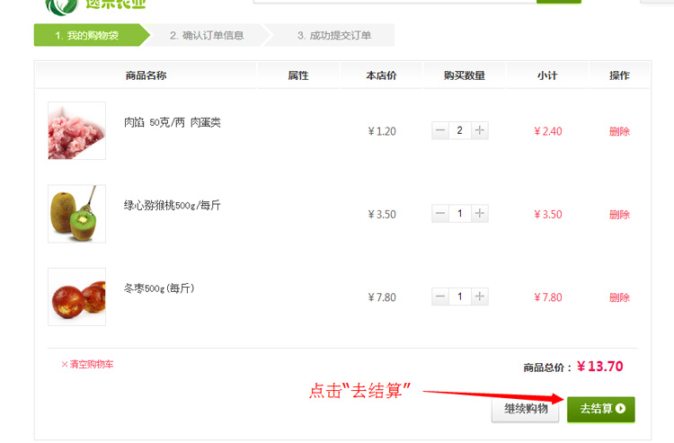 1:您可以继续购物,也可以立即去购物袋结算