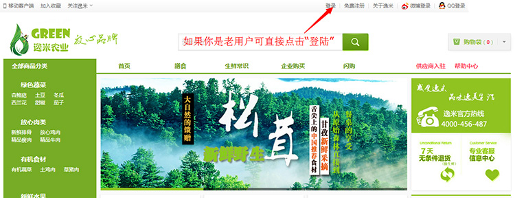 如果您是老顾客点击“登陆”后输入账号密码即可购物